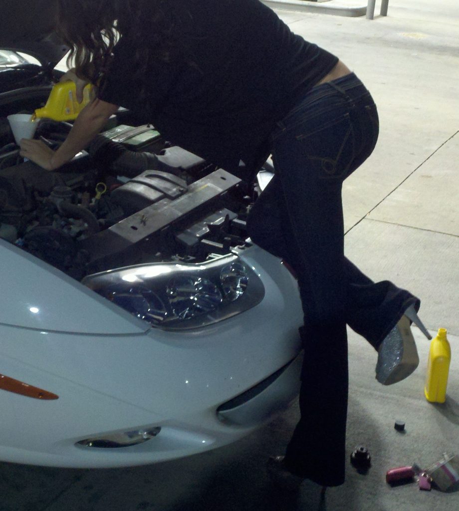 Needless to say, she put in the oil herself!” Haha your my boy blue!! Honestly I really don’t think I could have helped her either. She seems to be doing a fine job all by her sexy ass self. Long legs, tight ass, sexy heels, and she knows where the oil goes! Where can I meet a chick like her? Great creep work.