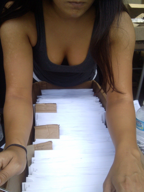 Great cleavage creepshot at the Warrior Dash sign-in table in NJ