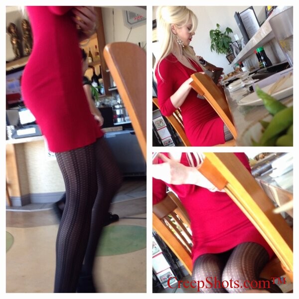Damn I love me a sexy hot blonde. Great legs and a red dress! We know what red means right? Yep …. She likes anal!