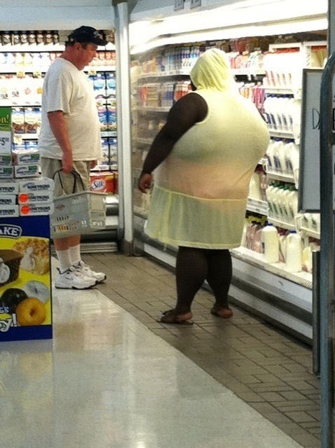 From back tits, to a moo moo hoodie, to some sort of orange/pink under garment… not to mention the contrast of standing next to the white milk all while staring at fellow no-chin shopper. They say a picture is worth a 1000 words, but i think this one is worth a lot more.