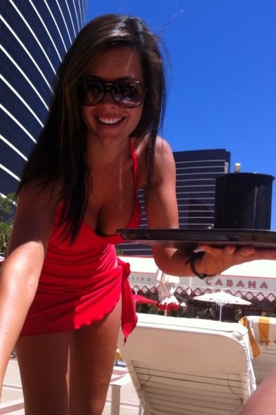 I would love to be served cocktails by this Vegas hottie. Her smile, cleavage and legs would keep me there all day!